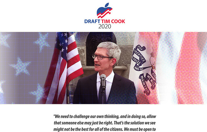 Screenshot of “Draft Tim Cook 2020,” a website